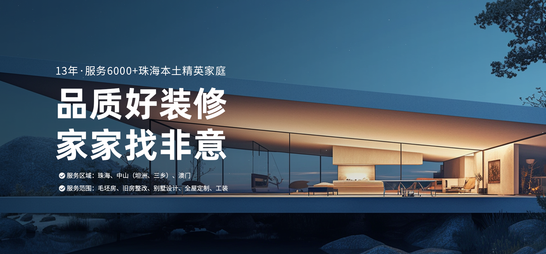 稳定成熟的工匠团队,不转包不外包,专注于珠海、中山(坦州、三乡)装修