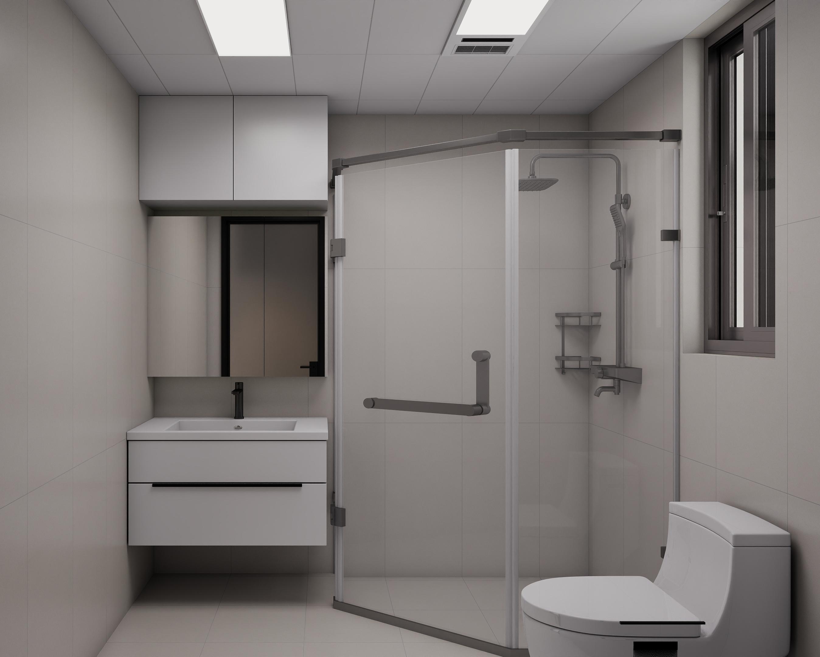卫生间干湿分离,通过透明玻璃淋浴房实现干湿分区,既防止水汽扩散,又保持空间通透感,减少小面积的压抑性。