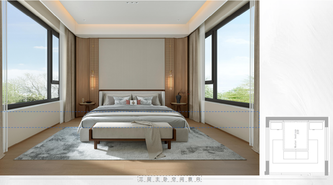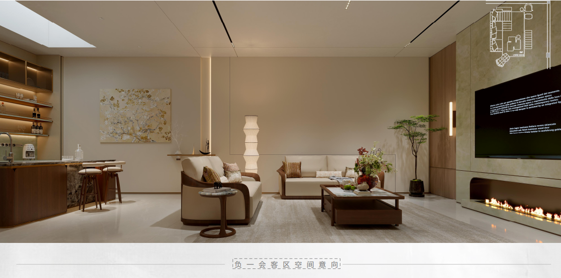 整套别墅全屋现代轻奢新中式风格,以温润原木为基底,搭配高级奢石、精致岩板与氛围感灯光。