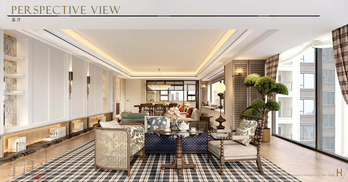 材质与细节:大理石(主卫)、人字拼地板、金属吊灯/壁灯、复古浴缸/书桌等,结合暖光照明(灯带、吊灯),提升质感;软装如条纹沙发、格纹地毯、艺术摆件,平衡精致与舒适。