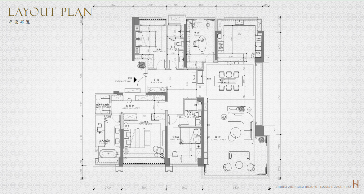 功能与美学:书房兼顾办公与展示,卧室注重休憩氛围,卫生间(主卫双台盆、女孩房干湿分离)兼顾实用与颜值,整体风格统一又因空间功能略有变化,实现“优雅不浮夸,精致不冰冷”的居住体验。
