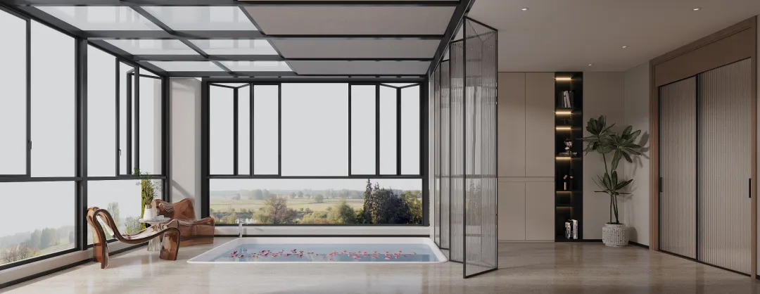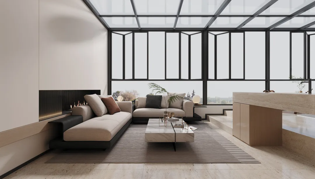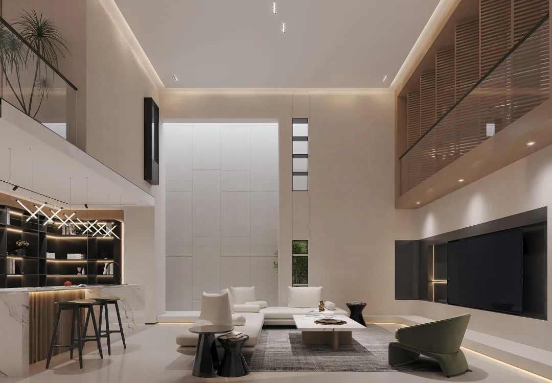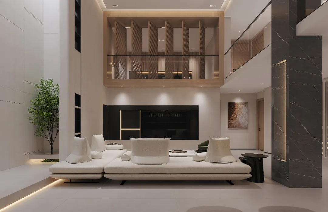 负二层玄关直接连通6米层高的中空客厅,再结合采光井的设计,让充足的自然光可以直接进入,使得负二层给人感觉,开阔大气、通透明亮。