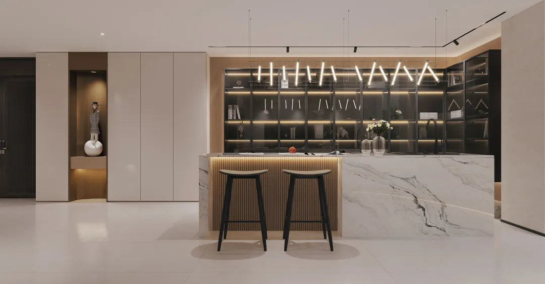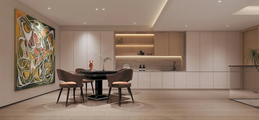 负一楼和负二楼是围绕室内公共休闲区域的想法来设计的,规划了会客厅、吧台、书房、麻将台等等,让原本受到限制的两层地下空间,成为日后家庭娱乐活动的焦点。