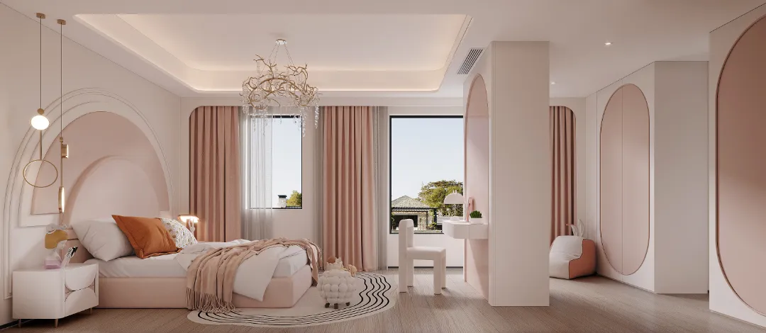 家里有一位小公主当然是要给她最好的!考虑到女孩子审美发展的会比较快,因此女儿房选择现代法式风的设计,梦幻、浪漫又经典。