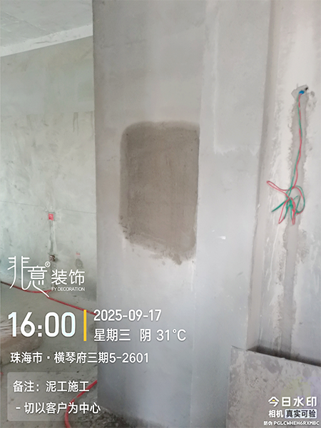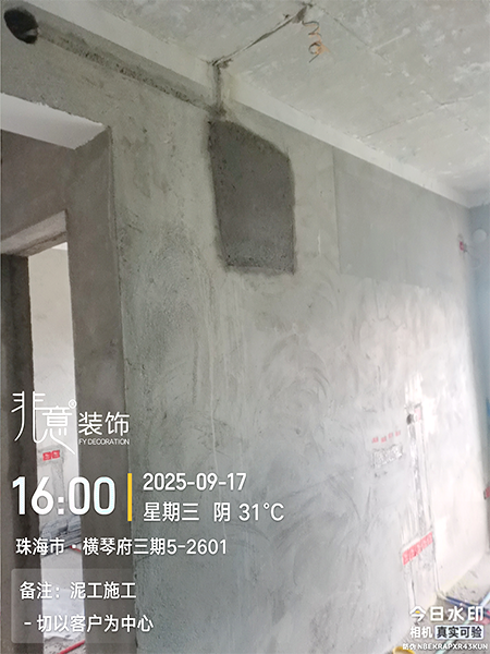 2025年9月17日施工项目泥工修补墙面,针对墙面存在的破损、裂缝、坑洼或起皮等问题,采用填补、打磨、找平等工艺进行修复处理,让墙面恢复平整光滑。