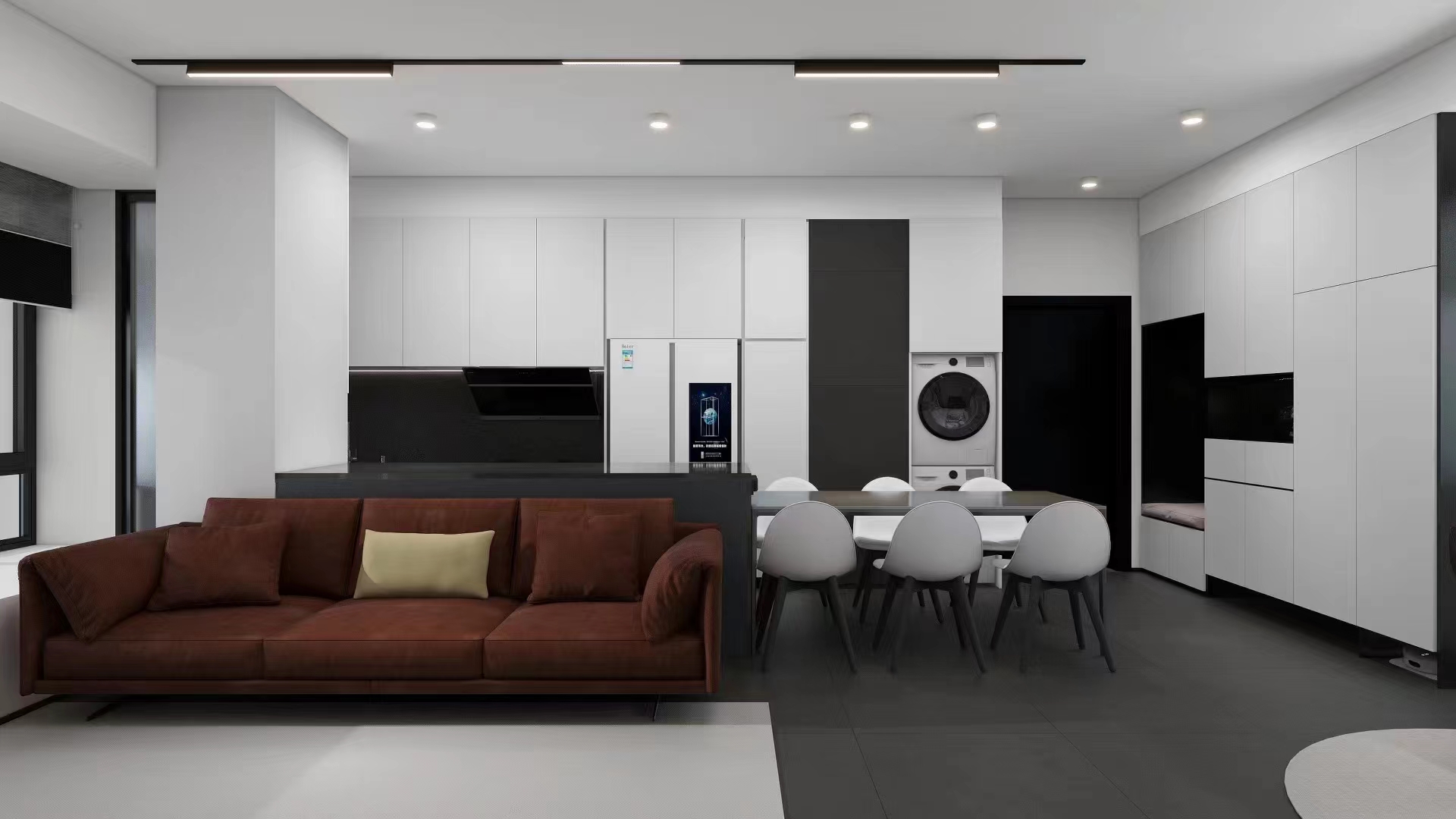 先说说色彩比例,这是黑白灰装修的核心,比例错了整个空间就没质感。千万别想着黑白灰各占三分之一,那样很容易显得沉闷又杂乱。正确的做法是让一种颜色当主角,另外两种做辅助。比如墙面和天花板用浅灰或者珍珠白,占比大概六成,这样能让空间显得亮堂透气;地面和沙发这类大件家具用中灰或深灰,占三成左右,起到稳定视觉的作用;纯黑色只用在灯具边框、门把手这些小细节上,占一成点缀就行,太多了会压抑,太少了又没重点。要是担心整体太冷淡,也能加一点点跳色,比如选个橙色的抱枕或者绿色的小摆件,但记住跳色不能多,一个空间里有一两处就够了,多了反而破坏简约感。
