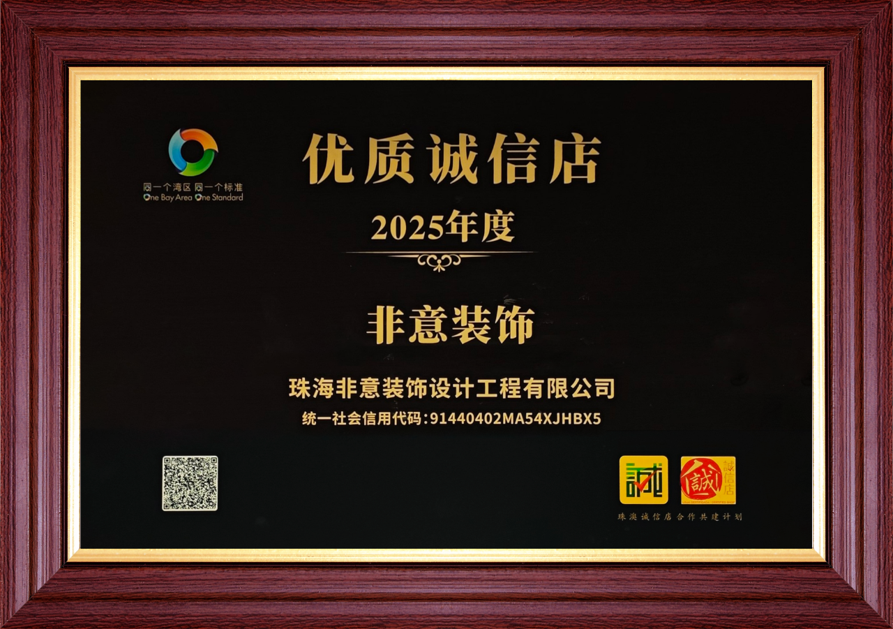 此次荣获「珠海优质诚信店」,对非意装饰而言,是认可,更是新的起点。企业将以湾区诚信标准为参照,持续完善内部管理体系与服务流程,主动接受社会监督,以更高标准要求自身。