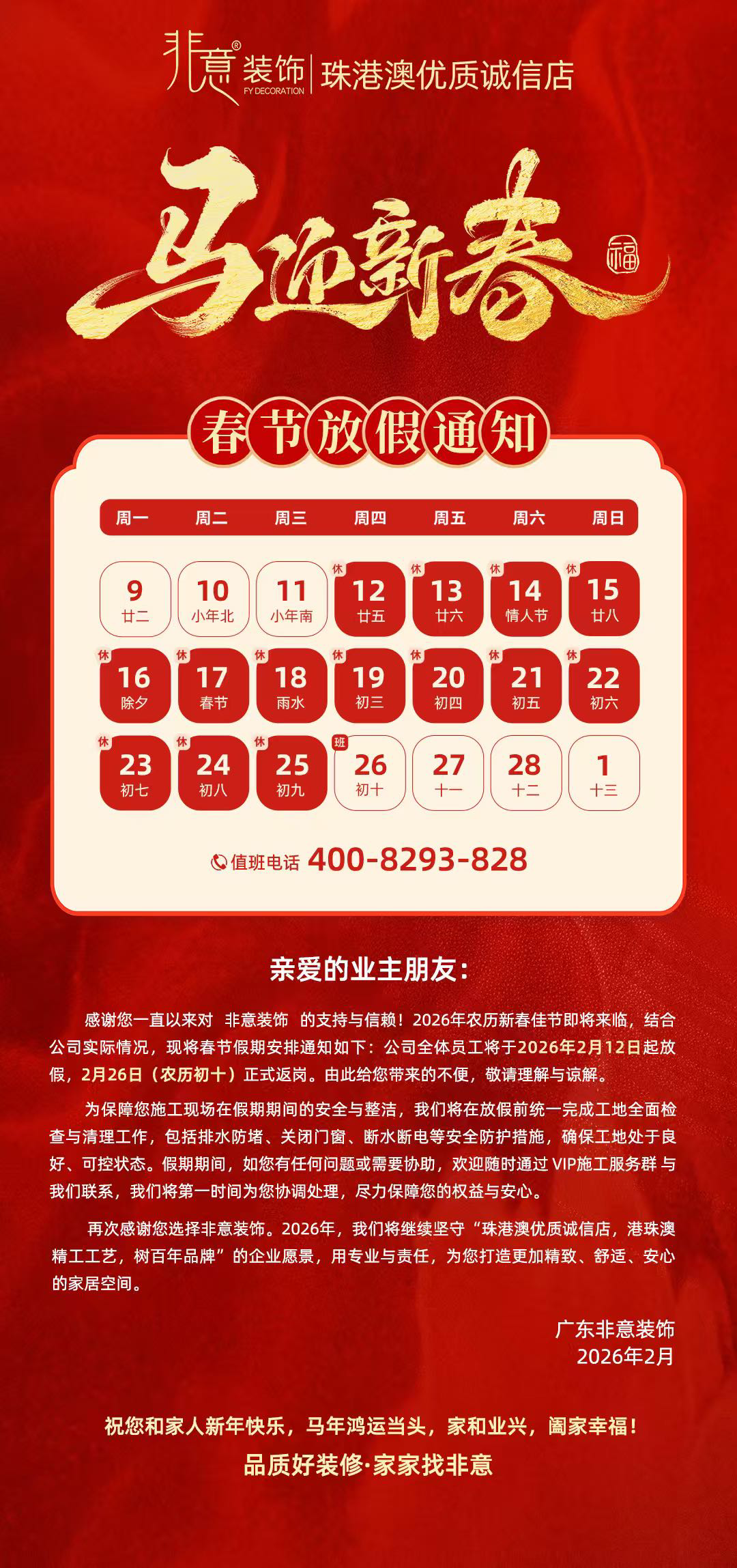 2026春节放假通知